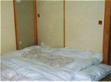 Although many Japanese sleep in beds these days, it is still common to sleep on a futon mattress spread on the floor. Westerners call the small couch which turns into a bed a futon, but that is very different from the traditional Japanese futon. A traditional Japanese futon set includes shikibuton (under futon), kakebuton (comforters), and makura (pillow)… Shikibuton is usually stuffed with cotton batting and is wrapped in shikifu (sheets). Japanese uses different types of futon, depending on the season, such as light ones in summer and heavy ones in winter. Futon made from down feathers is light and comfortable but is most expensive. Kakebuton is covered by kakebuton cover. The traditional Japanese pillow (makura) is filled with red beans or buckwheat chaff… Futon is usually put away during the day in the closet called oshiire. The oshiire closet has sliding doors and usually divided into two shelves. It is best to keep the futon on the upper shelf. Japanese houses are usually small and do not have many rooms, so a room is used for dual purposes. During the day, a room can be used as workroom or guestroom after futon is stored in the oshiire. It is very convenient… It is important to sometimes dry futon under direct sunshine. You may ruin your futon if you keep them in the closet or spread on the floor all the time. Remember that Japan is very humid especially in rainy season. There is a product called futon kansouki (futon dryer) in Japan. Just place the dryer between kakebuton and shikibuton while it is spread on the floor. Airing your futon really helps you sleep well… Also, it is commonly said that sleeping on futon is better for the back than sleeping on a soft bed. The hardness of the floor seems to be good for people who have back problems.
