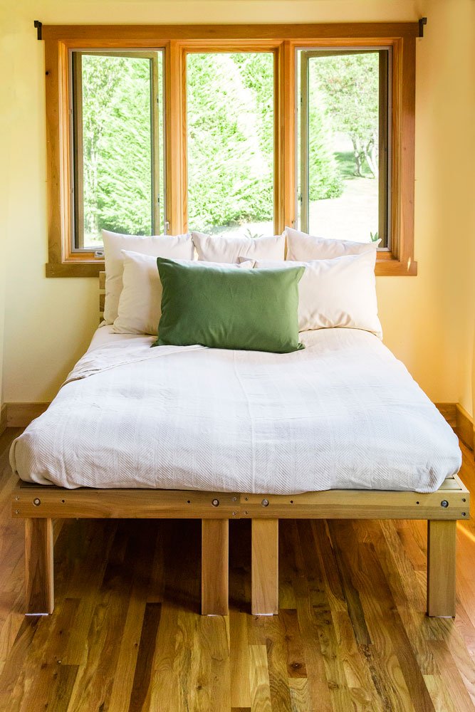 This basic unit is called an Eco Square™. This small platform can combine with others of it’s kind to become almost any piece of furniture…a couch frame, a coffee table, a love seat, a wrap around couch, or… a lovely bedframe for either 1/2 Queen (European Single), or a Queen size bed.